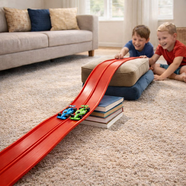 Децата могат да оформят пистата, използвайки ежедневни предмети, за да създават скокове, тунели и лупинги, като така се насърчава въображението и уменията за решаване на проблеми вместо повтаряща се игра. Това ги държи концентрирани с часове без екрани.