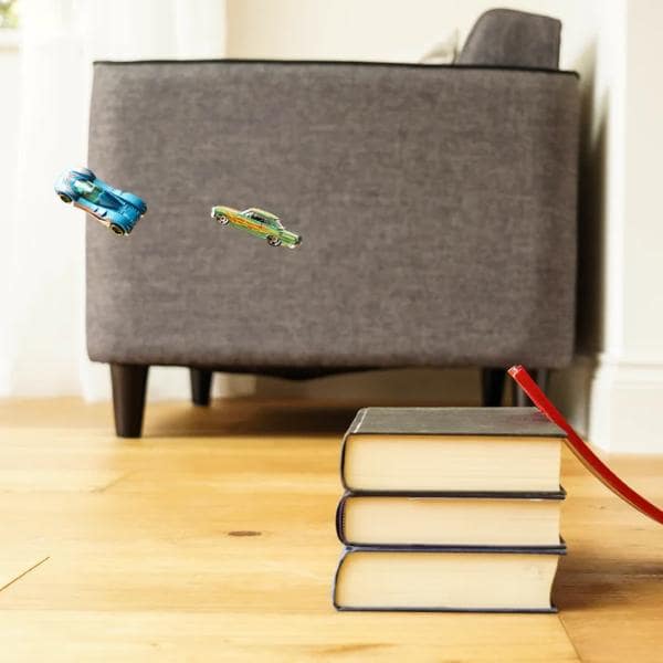 Използвайте наличните си колички-играчки, лесно го прикрепете към прозореца или вратата, изкарайте го и започнете да се състезавате – задвижван само от гравитацията, без нужда от батерии или скъпи допълнения.
